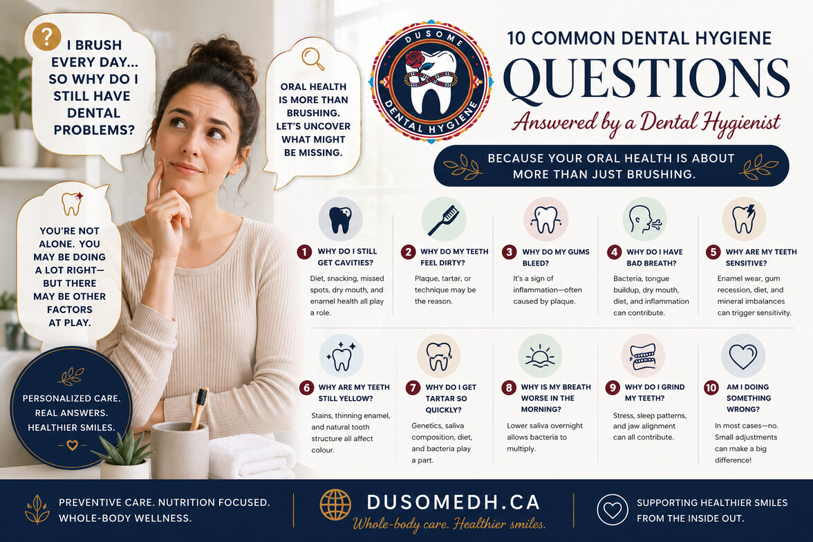 *This content is provided for educational and informational purposes only and is not intended to substitute professional medical or dental advice, diagnosis, or treatment. Individual health needs vary. Always consult with a qualified healthcare professional before making changes to your oral health care routine. Dusome Dental Hygiene provides guidance within the scope of dental hygiene practice.